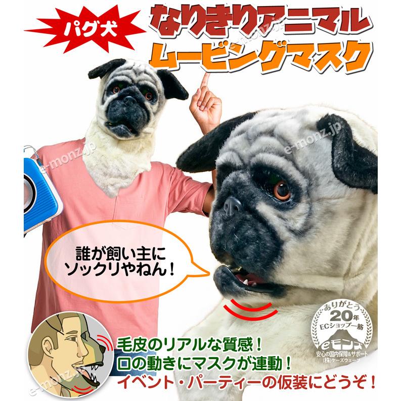 口が連動しリアルに動く なりきりアニマルムービングマスク パグ犬 アニマルマスク Move Mask Pug Eモンズ Yahoo 店 通販 Yahoo ショッピング