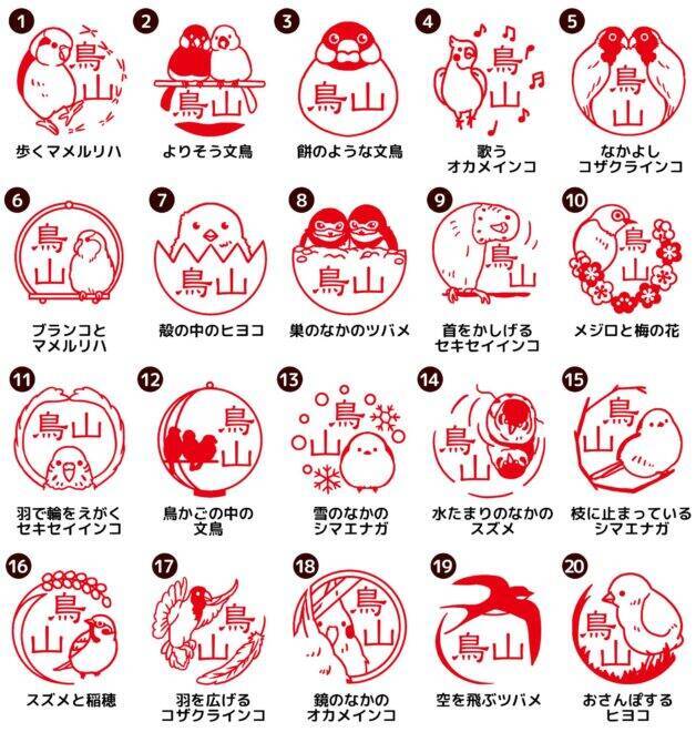 文鳥やインコなど種類 可愛い小鳥たちのイラストが描かれた印鑑 ことりコ 19年7月9日 エキサイトニュース